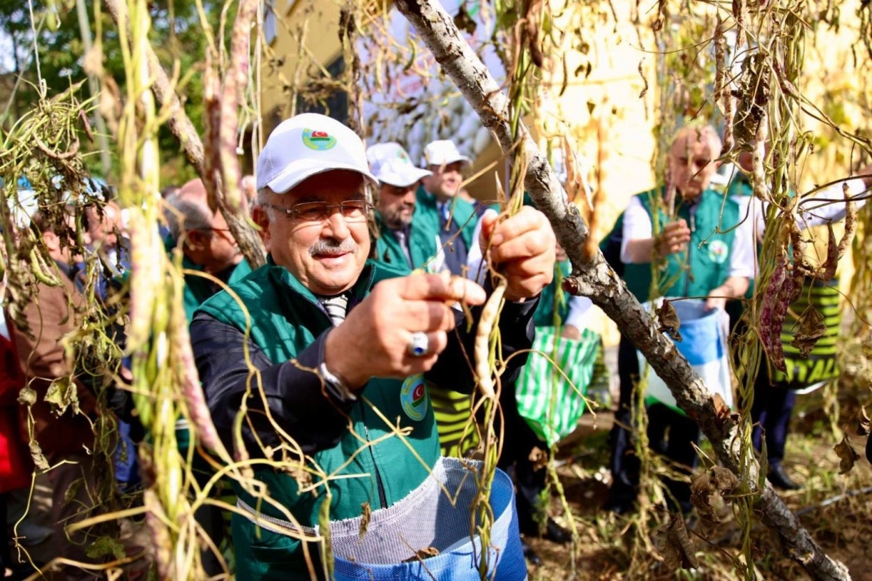 Konuşmaların ardından fasulye hasadı için üreticiler ve protokol üyeleri tarlaya girerek yılın ilk hasadını gerçekleştirdi.