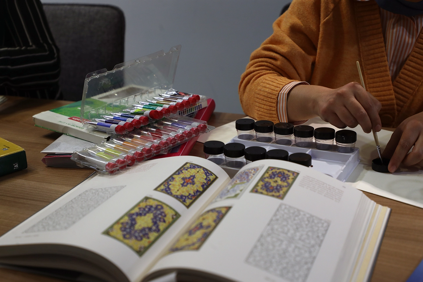 Kursiyerler tezhip derslerinde kumaşa dokunan inci tanesi gibi, her çizgisiyle zarafet ve incelik yaratmayı, altın ve renkleri birleştirmeyi, en ince detaylara bile hayat vermeyi öğreniyorlar.
